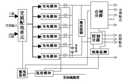 直流屏由高頻開關整流模塊,可編程控制器(PLC,蓄電池組,絕緣監(jiān)督裝置,蓄電池自動監(jiān)測裝置,母線電壓自動調理裝置,觸摸屏,預告信號裝置等組成。蓄電池采用免維護電池。